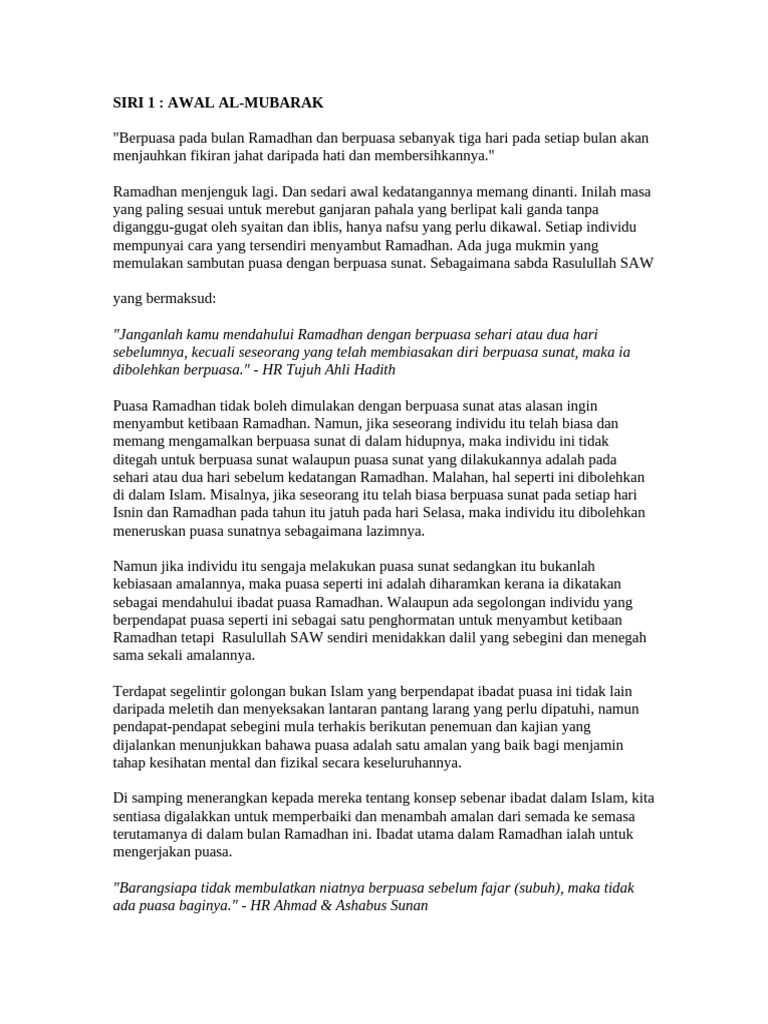 melebihi daripada persiapan untuk puasa., Seharusnya kita bersiap untuk puasa bersedia