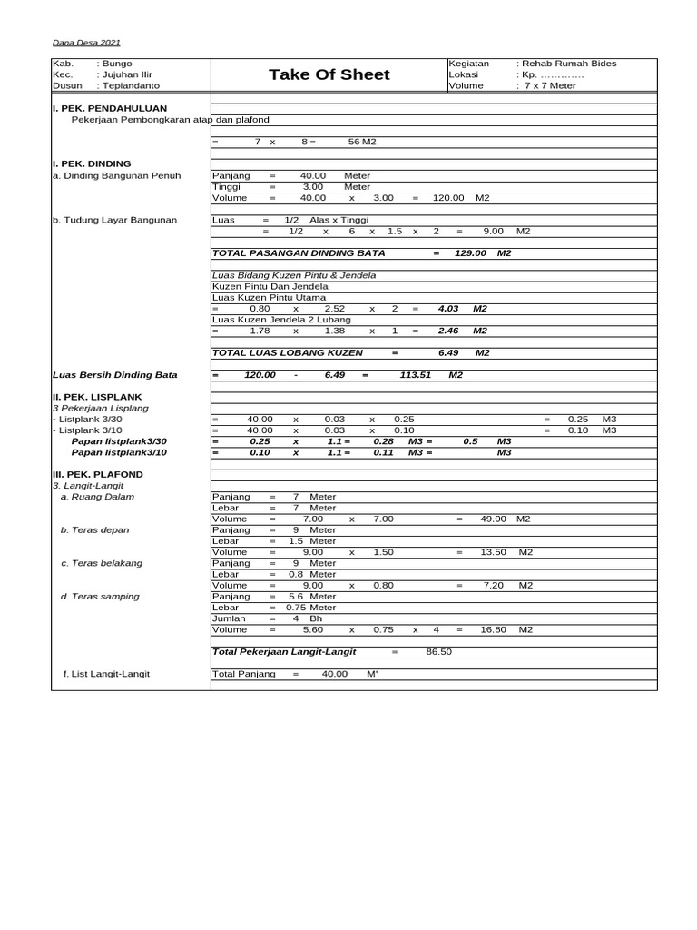 Kec. : Jujuhan Ilir Take Of Sheet Lokasi : Kp. ………….