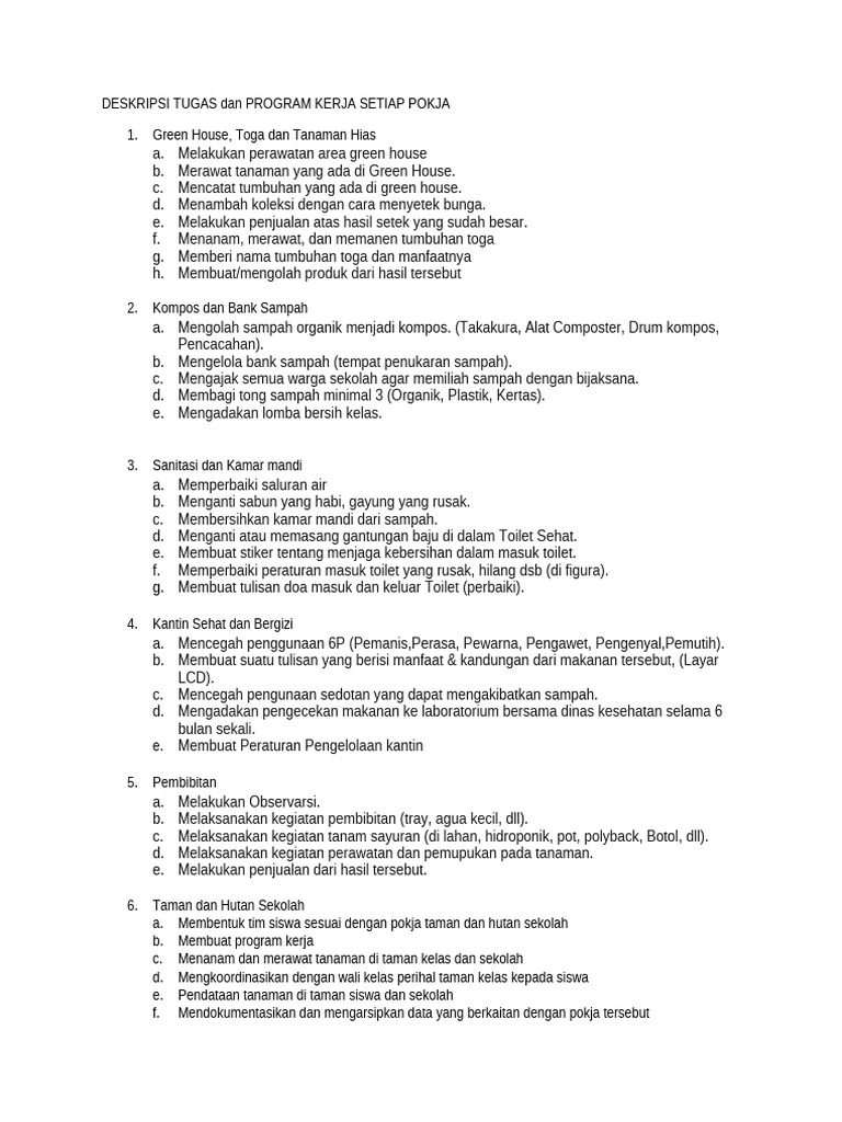 DESKRIPSI TUGAS dan PROGRAM KERJA SETIAP POKJA