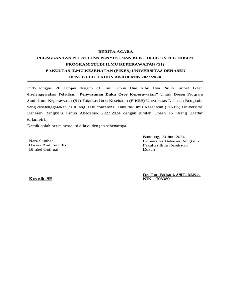Demikianlah berita acara ini dibuat dengan sebenarnya.