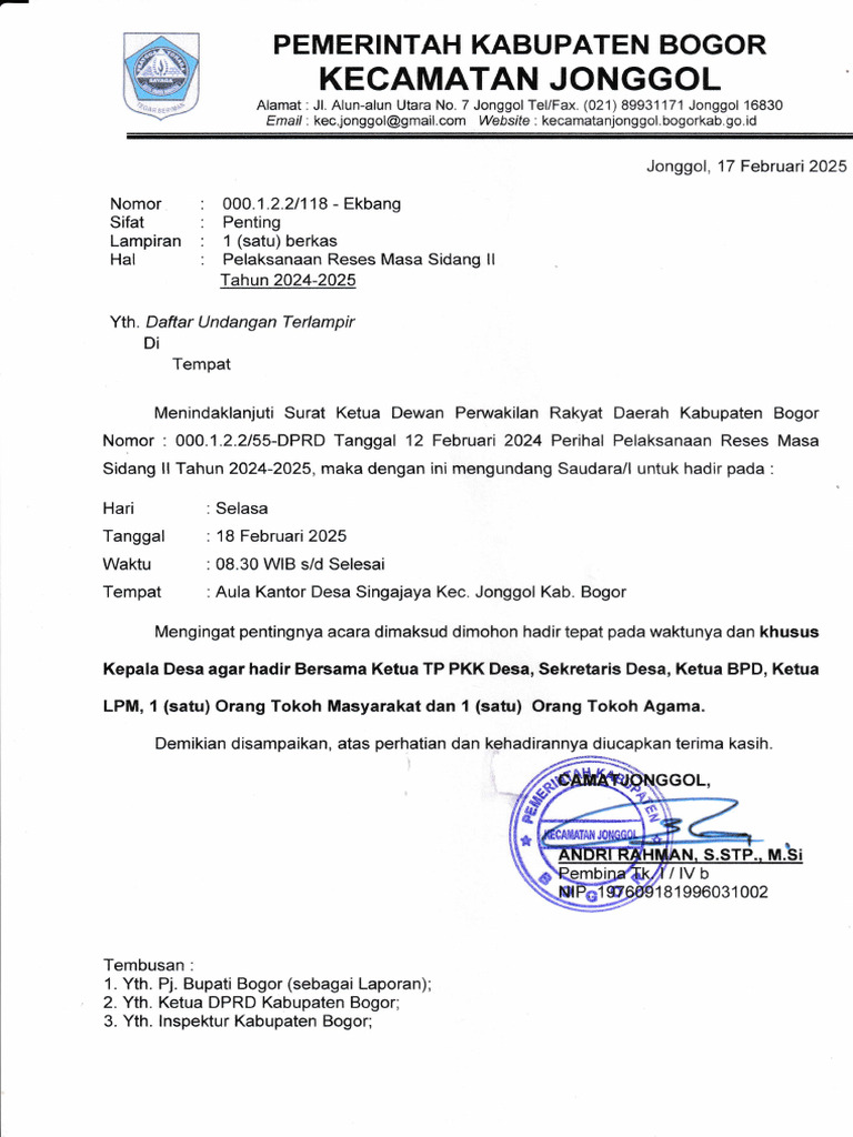 1. Yth. Pj. Bupati Bogor (sebagai Laporan);