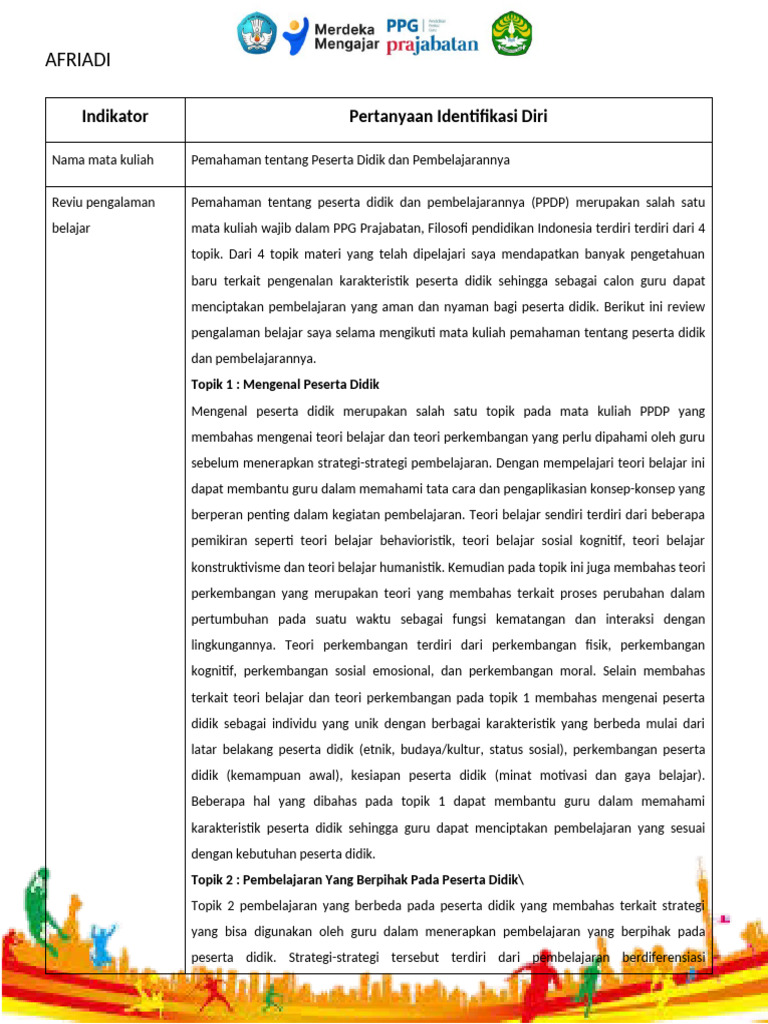 Berikut ini artefak-artefak pembelajaran PPDP pada materi Mengenal Peserta Didik