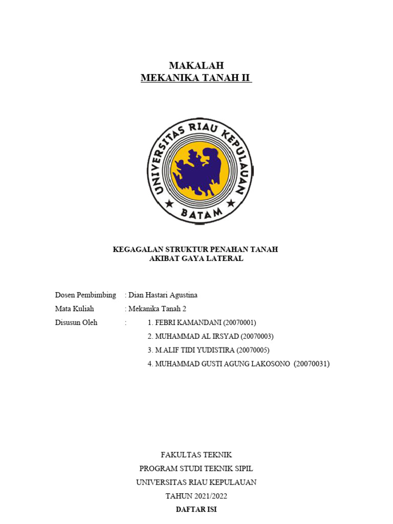 berjudul “KEGAGALAN STRUKTUR PENAHAN TANAH AKIBAT GAYA