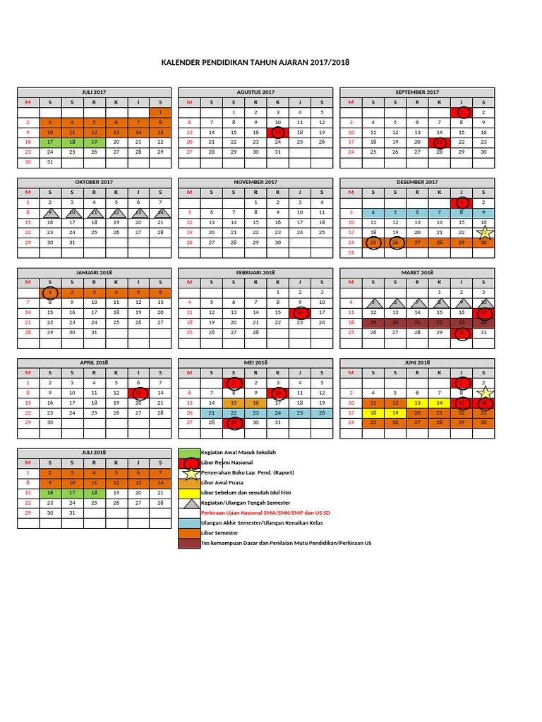 KALENDER PENDIDIKAN TAHUN AJARAN 2017/2018