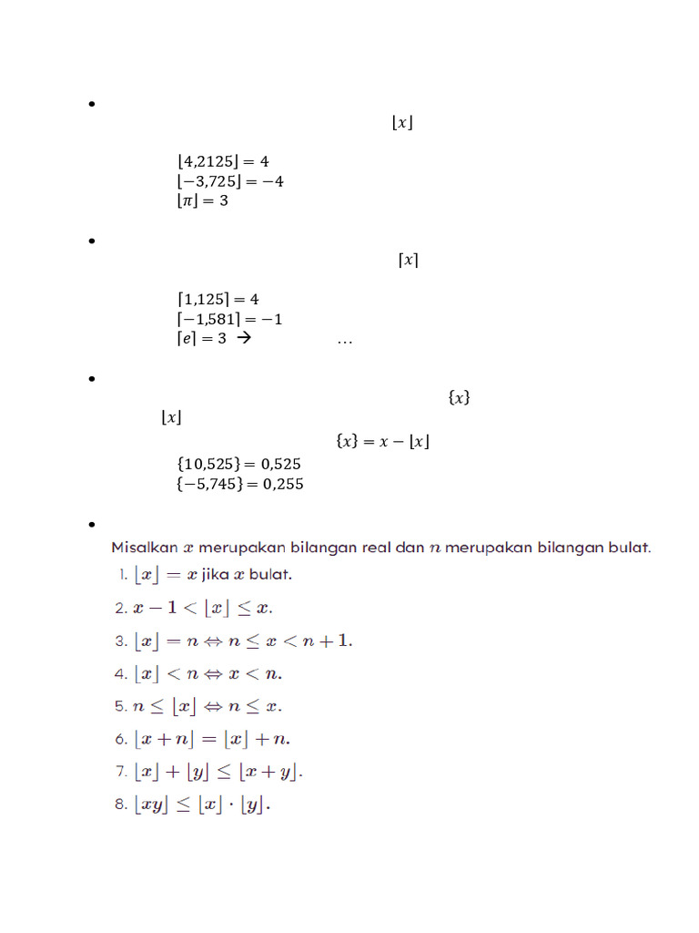 Suatu setiap bilangan real x, fungsi floor ⌊𝑥 ⌋ menyatakan bilangan bulat terbesar