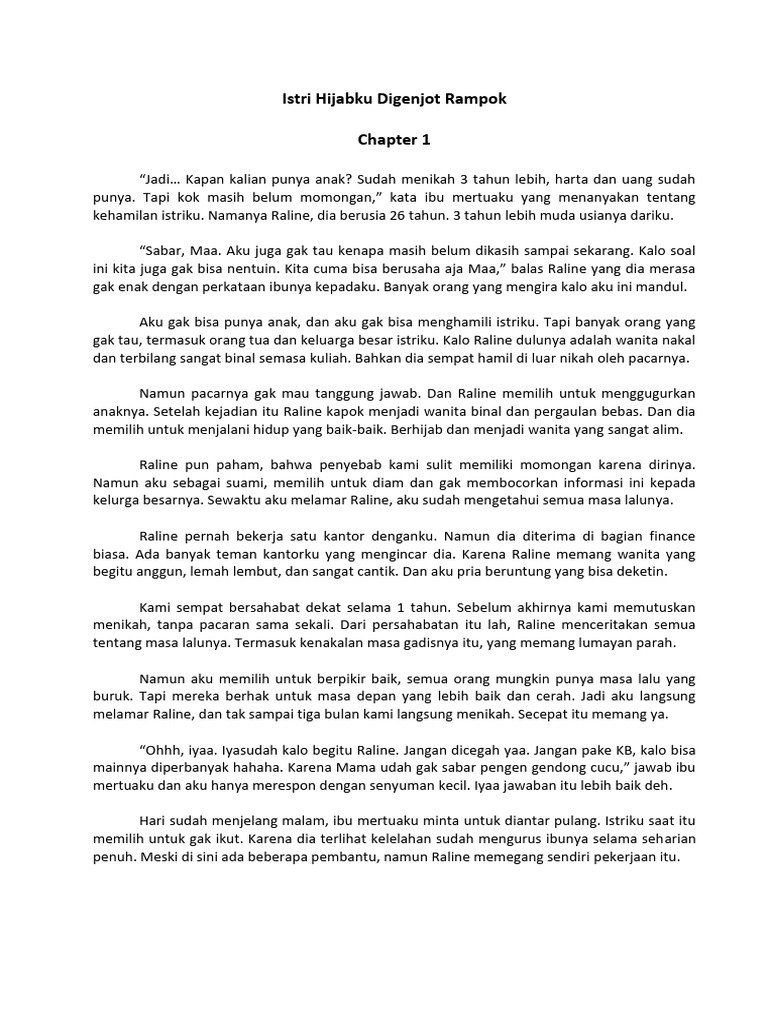 adalah istri yang baik dan taat!” jawabku yang berusaha menyadarkan kembali Raline saat itu.