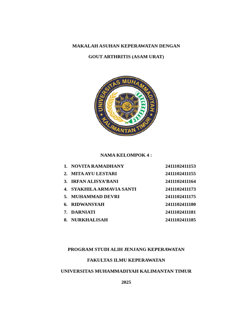 Gout Arthritis merupakan penyakit yang mengakibatkan penumpukan