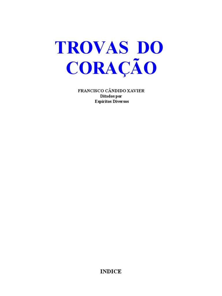 Afirmativa Alegria Beneficncia Candeia Viva Caso Triste Criao Desengano Desero Despedida Destaque Disciplina Divino Rei Esqueamos Estas Trovas Festa Filho E Pai Final Gmeos Guerra Annima Grandes Eventos Gratido Hora De F Impacincia Ligaes Novo Dia O Inimigo O Servidor De Jesus Orao Origem Do Amor Perda Previses Problema Da Paz Prodgio Do Amor Prossegue Realidade Reconforto Relaes Resumo Da Lei Segredos Segredos Da Vida Solido til Tranqilidade Valiosa Poupana Usufruto Vida ntima Viagem Adiante Viagens Da Alma Invencvel