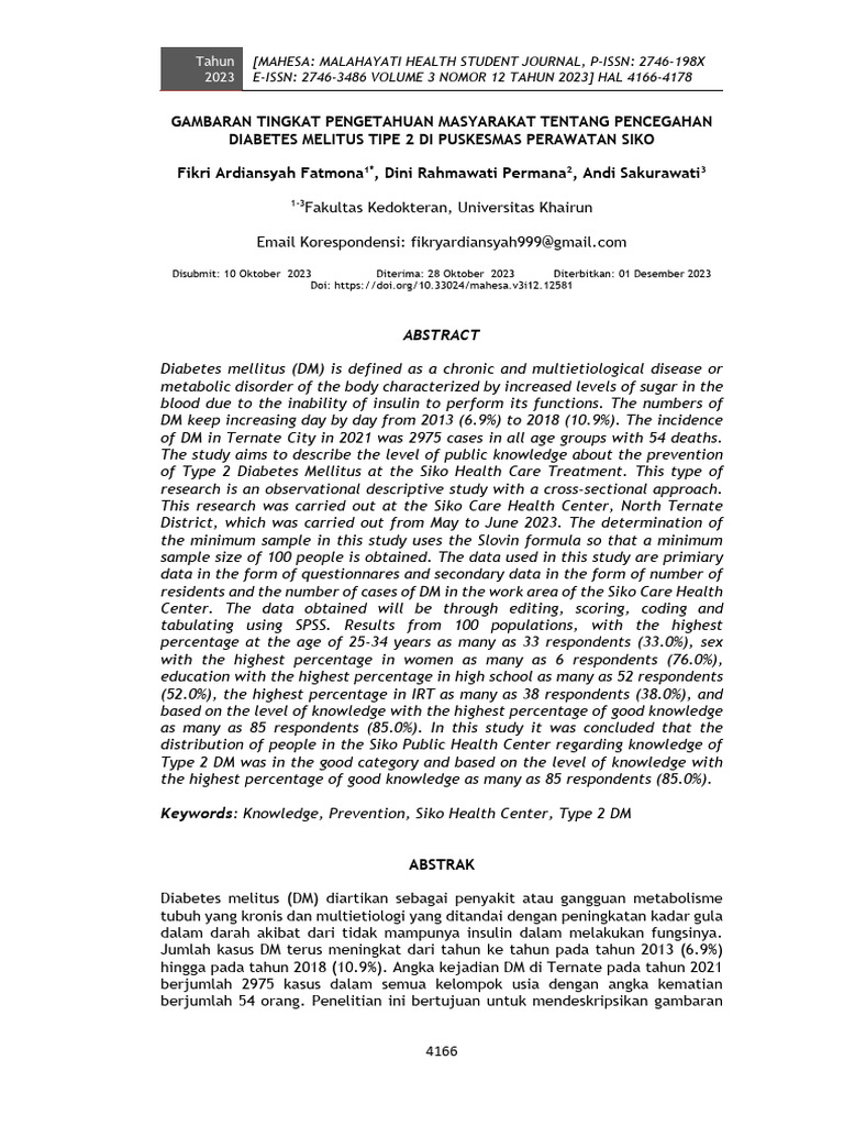 Kata Kunci: Pengetahuan, Pencegahan, Puskesmas Siko, DM Tipe 2