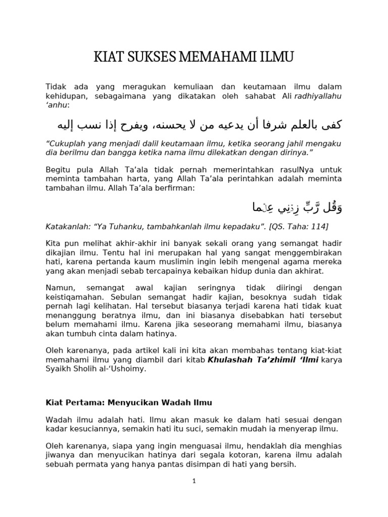 memahami ilmu yang diambil dari kitab Khulashah Ta’zhimil ‘Ilmi karya