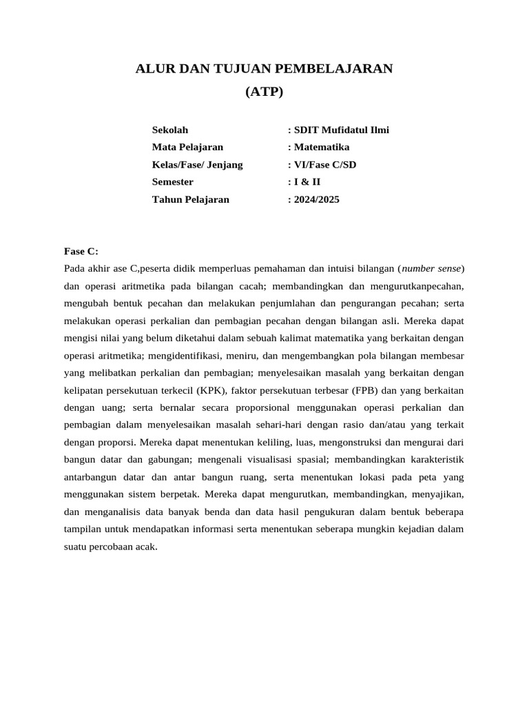 Kelas/Fase/ Jenjang : VI/Fase C/SD