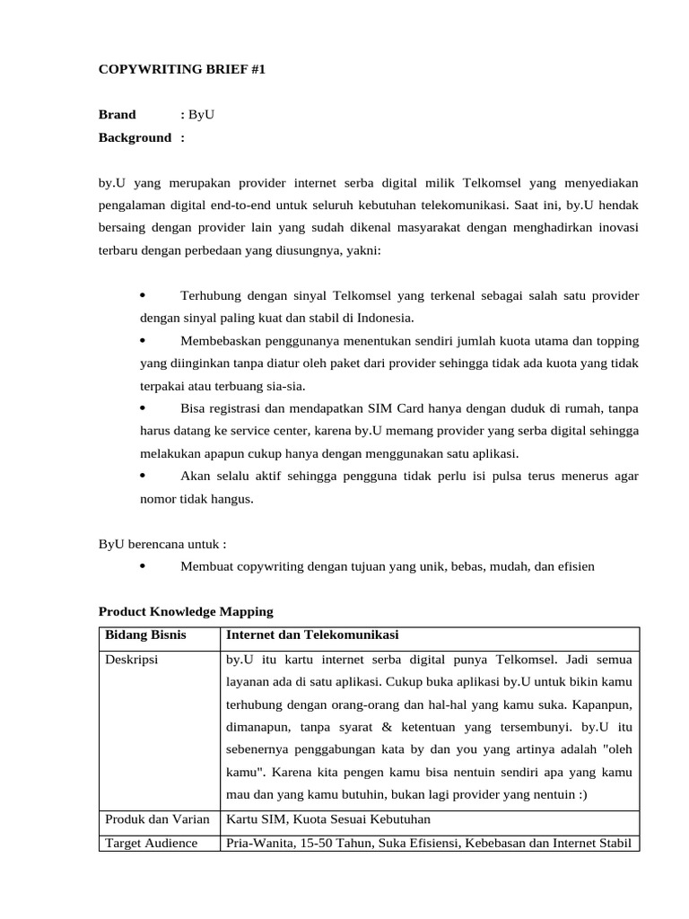COPYWRITING BRIEF #1