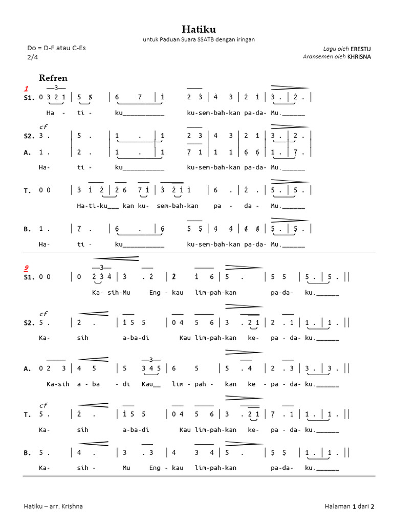 Hatiku – arr. Krishna Halaman 2 dari 2