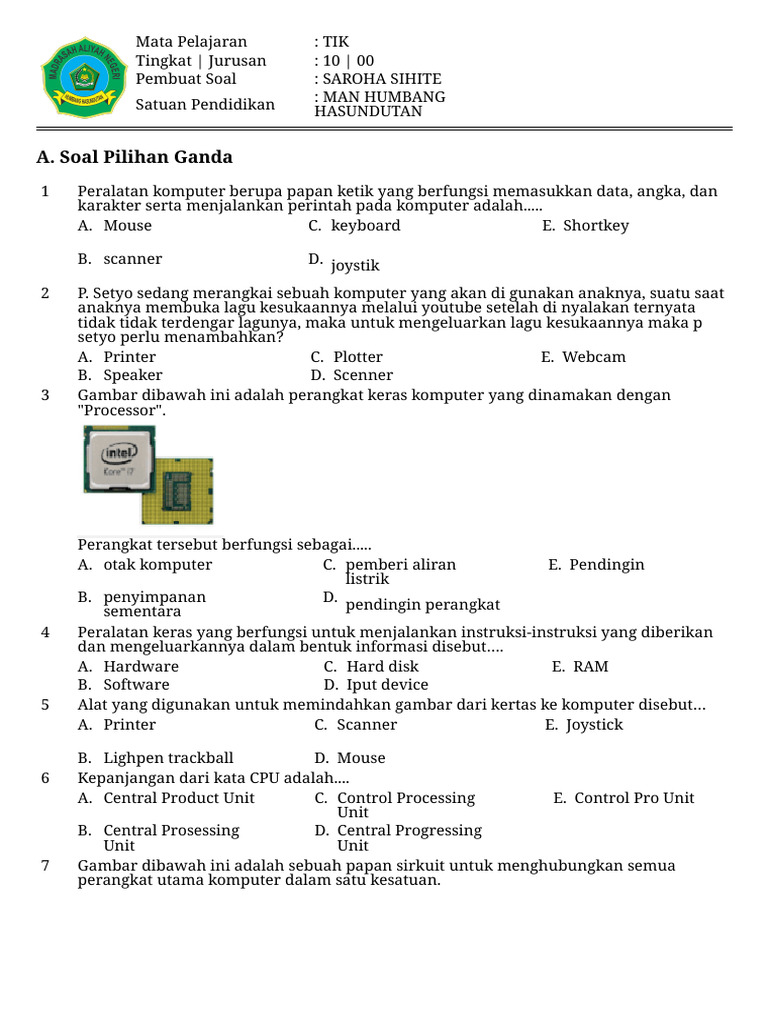 5 Alat yang digunakan untuk memindahkan gambar dari kertas ke komputer disebut…