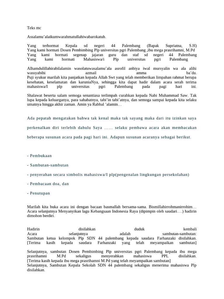 Yang terhormat, Kepala sekolah sd negeri 44 Palembang, ibu/bpk …… beserta wakil ketua