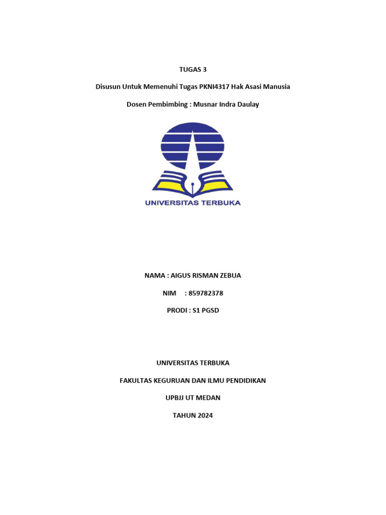 Disusun Untuk Memenuhi Tugas PKNI4317 Hak Asasi Manusia