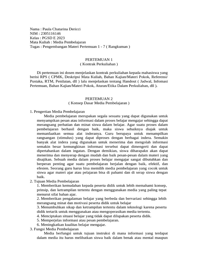 Tugas : Pengembangan Materi Pertemuan 1 - 7 ( Rangkuman )