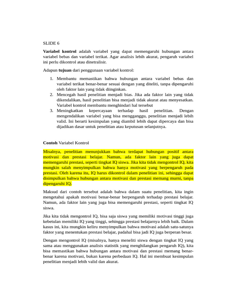 mengendalikan variabel yang bisa mengganggu, penelitian menjadi lebih
