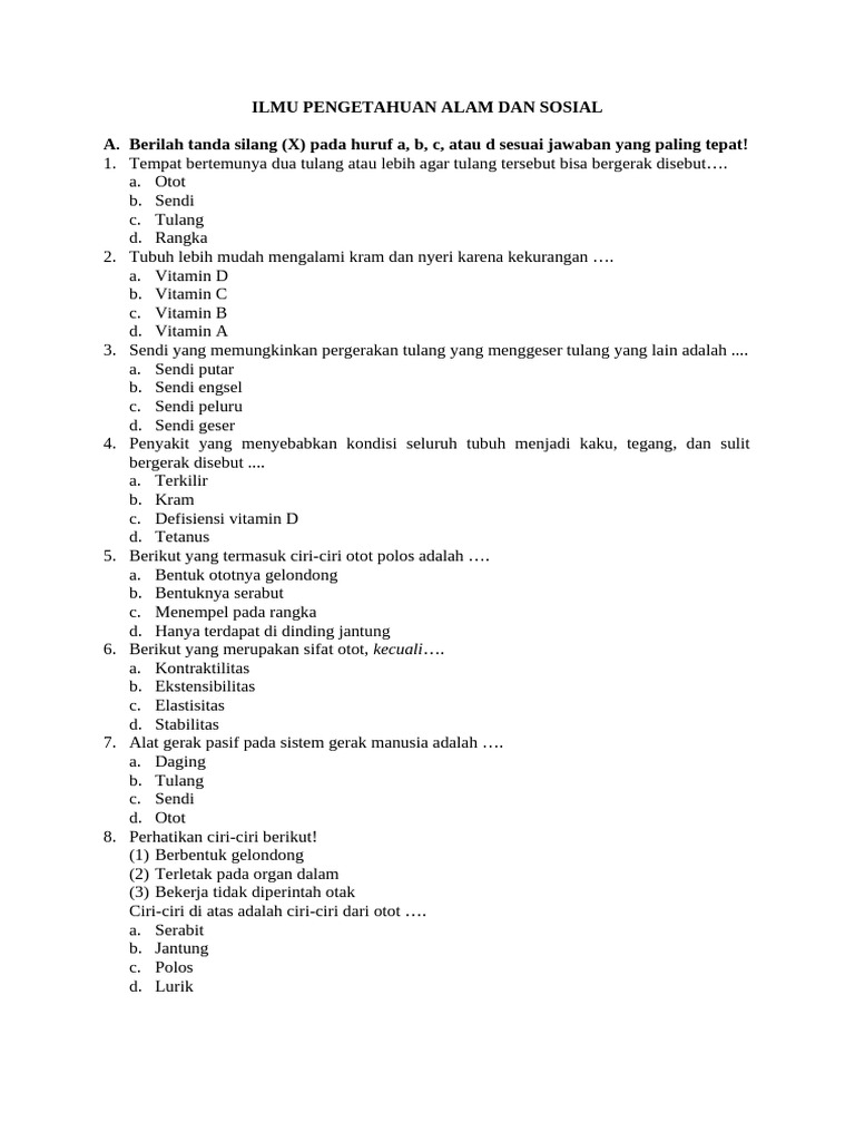 A. Berilah tanda silang (X) pada huruf a, b, c, atau d sesuai jawaban yang paling tepat!