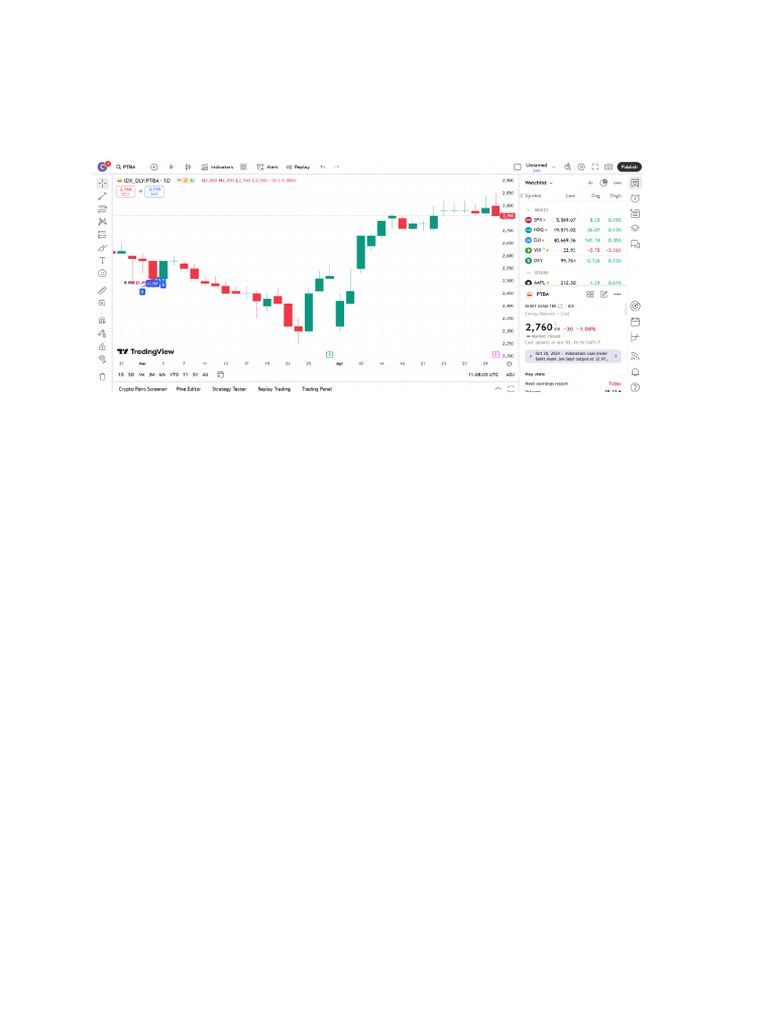 Dari grafik periode Januari hingga April 2025, PTBA menunjukkan tiga fase pergerakan