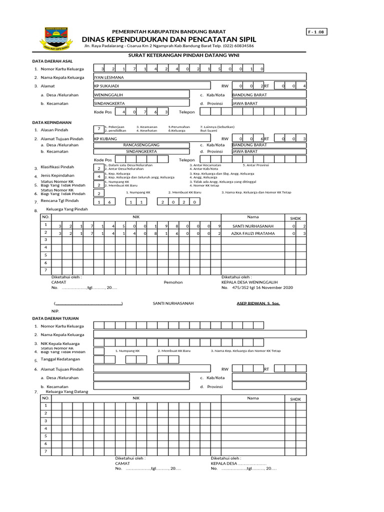 SURAT KETERANGAN PINDAH DATANG WNI