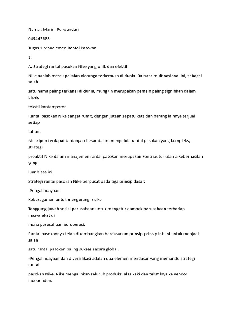A. Strategi rantai pasokan Nike yang unik dan efektif