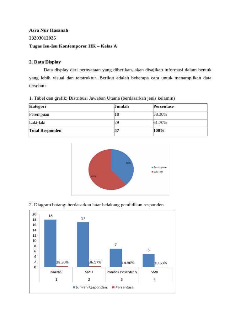 1. Tabel dan grafik: Distribusi Jawaban Utama (berdasarkan jenis kelamin)