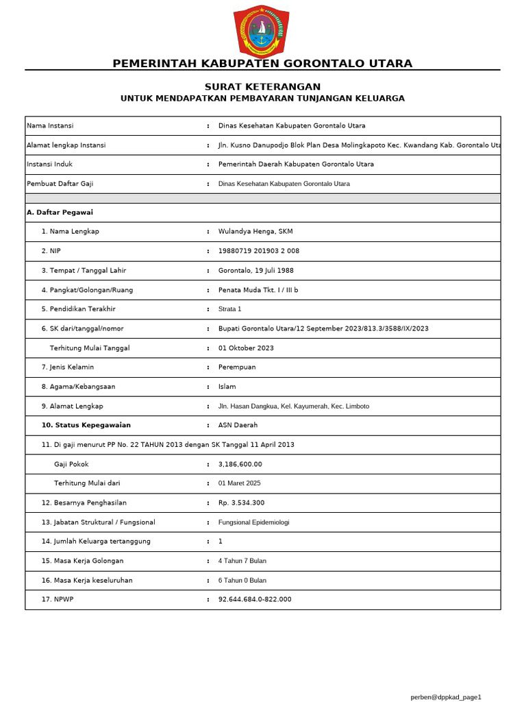 Pembuat Daftar Gaji : Dinas Kesehatan Kabupaten Gorontalo Utara