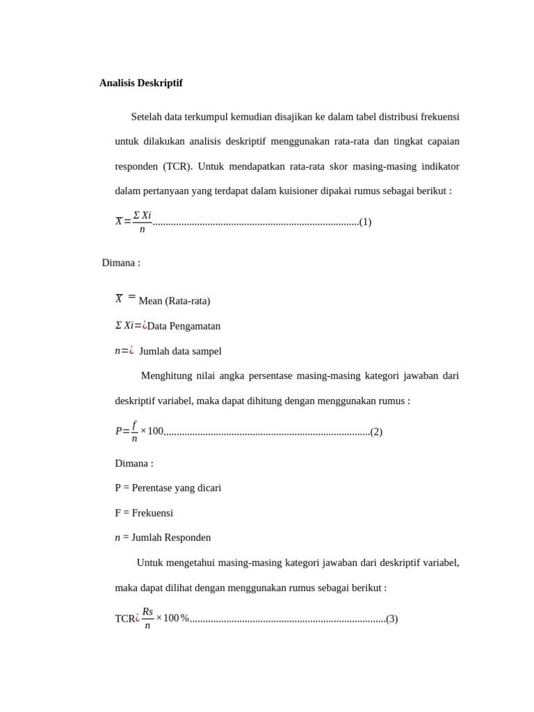 deskriptif variabel, maka dapat dihitung dengan menggunakan rumus :