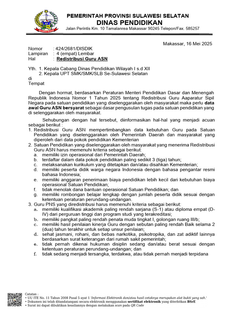 Republik Indonesia Nomor 1 Tahun 2025 tentang Redistribusi Guru Aaparatur Sipil