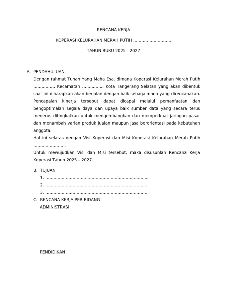 Dengan rahmat Tuhan Yang Maha Esa, dimana Koperasi Kelurahan Merah Putih