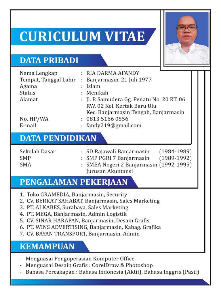 Tempat, Tanggal Lahir : Banjarmasin, 21 Juli 1977