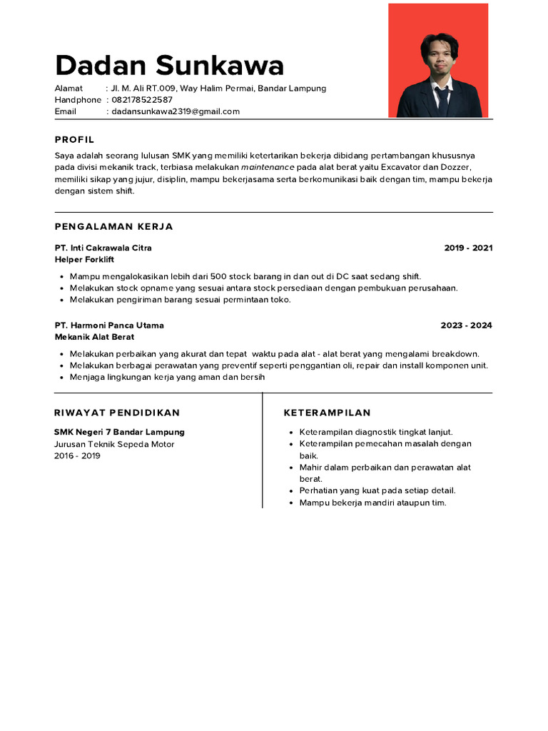 Saya adalah seorang lulusan SMK yang memiliki ketertarikan bekerja dibidang pertambangan khususnya