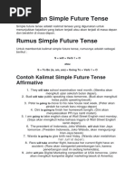 Tenses adalah suatu bentuk dari kata kerja (verb) yang menunjukkan waktu suatu tindakan dalam kalimat bahasa inggris misalnya waktu lampau (past), sekarang (present), akan datang (future). Berdasarkan pembagian waktu tersebut, dibentukalah tiga kelompok tenses utama yang masing-masing dirinci lagi untuk menyatakan tindakan dalam waktu yang lebih spesifik. Tenses is a form of the verb (verb) which shows the time an action in the English sentence such as the past tense (past), current (present), will come (future). Based on time division, the main tenses dibentukalah three groups, each broken down again to express the action in a specific time (according to Zuhdi Najib) Tenses adalah suatu kata kerja (verb ) yang menunjukkan suatu bentuk tindakan dalam suatu waktu tertentu dalam kalimat bahasa inggris yang biasanya dibagi dalam tiga waktu yaitu, lampau(past) ,sekarang (present) ,dan akan datang (future) dalam ketiga bagian waktu tersebut dapat dibagi lagi ke dalam 4 bagian yakni simple,continuous,perfect,dan perfect continuous tense is a verb (verb) to show a form of action within a certain time in the English sentences are usually divided into three times, namely, past (past), current (present), and will come (future) in all three parts of the can be divided into four parts, namely simple, continuous, perfect, perfect and continuous.(according betty schrampher azar) Tenses adalah suatu bentuk tindakan yang dibagi dalam 3 bentuk waktu past (lampau),present (sekarang),dan akan datang (future). dan dapat dirinci lagi ke dalam bentuk yang lebih spesifik lagi dengan melihat dari terjadinya waktu tindakan / kejadian tersebut . Tenses is a form of action is divided into three forms of the past (past), present (now), and future (future). and can be broken down again into a more specific form by looking at the time of the action / event ( according marie ellen).