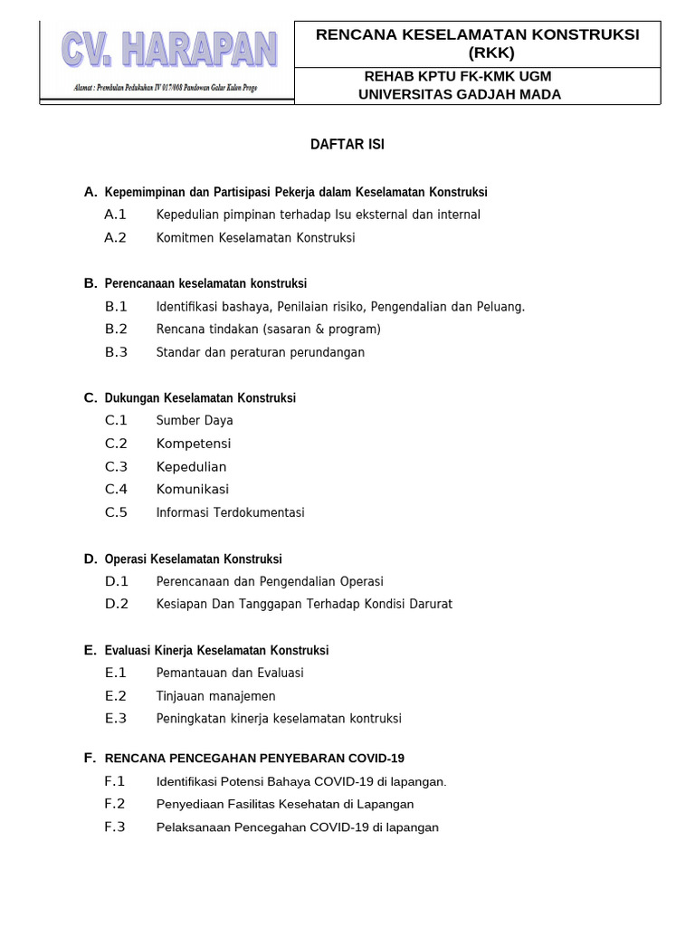 Rencana Keselamatan Konstruksi (RKK) : Rencana Pencegahan Penyebaran Covid-19