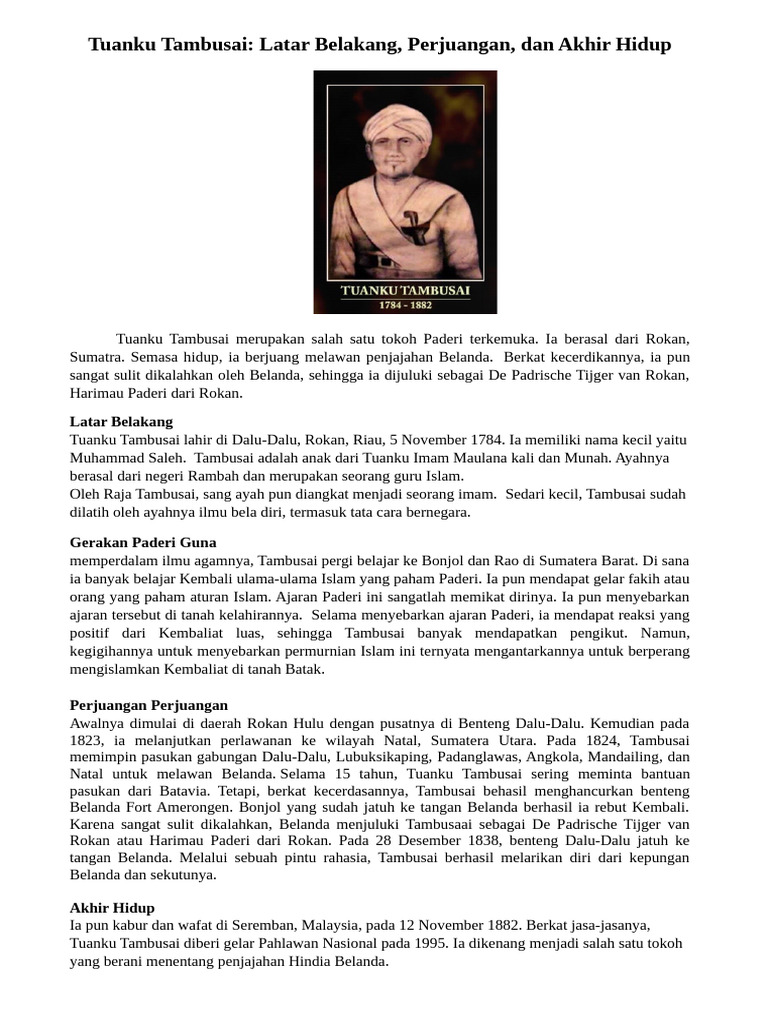 Muhammad Saleh. Tambusai adalah anak dari Tuanku Imam Maulana kali dan Munah. Ayahnya