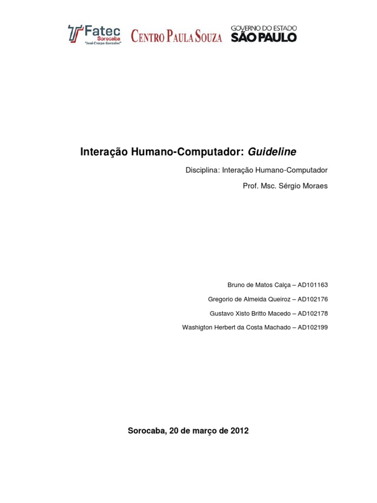 Introduo....................................................................................................................................... 2 2. Modelo Shneirderman................................................................................................................. 3 3. Conceito de Guidelines ............................................................................................................... 5 3.1 Nossas guidelines ............................................................................................................7 3.2. Guidelines de empresas ..................................................................................................9 Concluso..................................................................................................................................... 11 Bibliografia .................................................................................................................................... 12