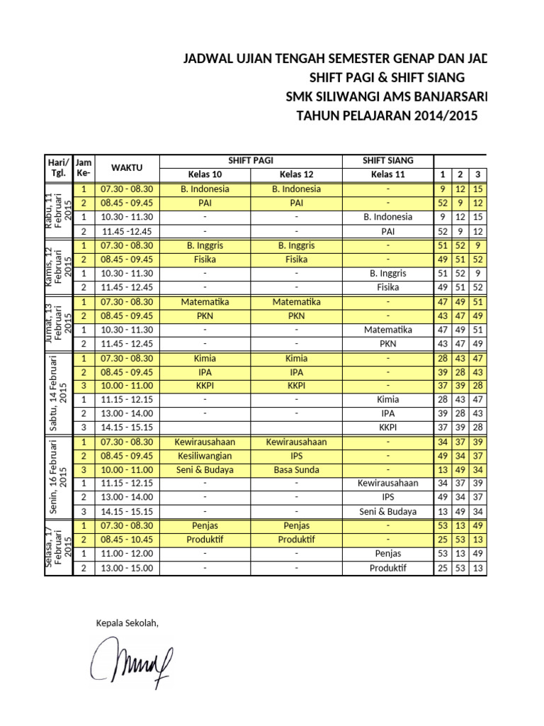 DAFTAR PENYERAHAN BIAYA PEMBUATAN NASKAH SOAL DAN PEMERIKSAAN