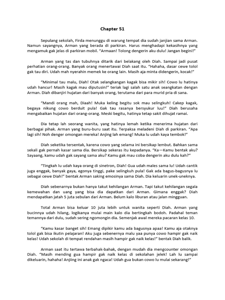 ngentot dengan Arman. Firda sendiri juga gak yakin bisa setia. Dia gak jauh beda dari Diah.