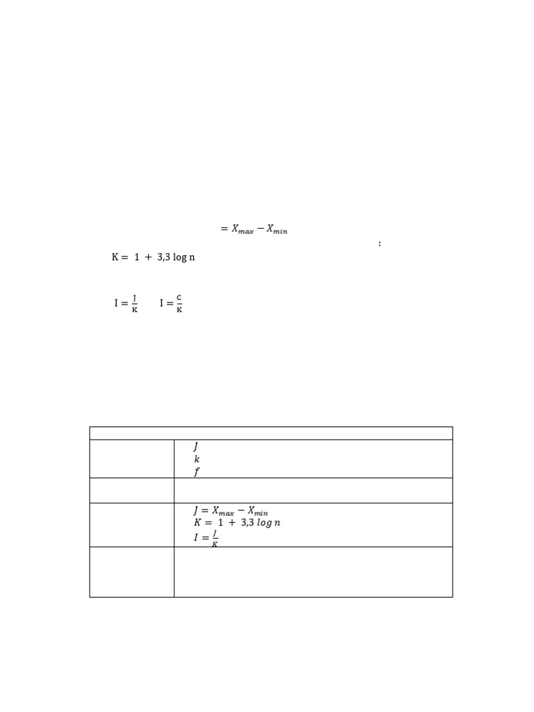 2) Menentukan banyak interval (K) dengan rumus "Sturgess" yaitu