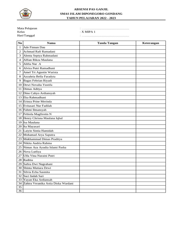 Kelas : X MIPA 1