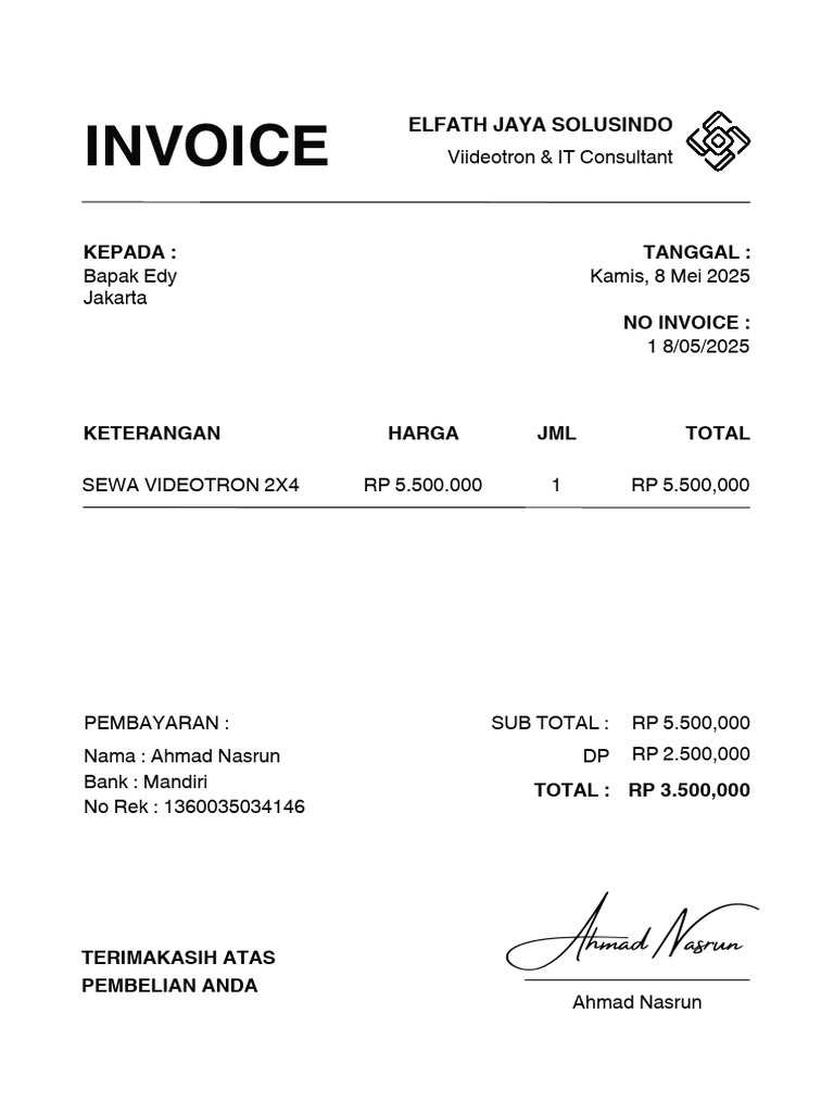 Nama : Ahmad Nasrun DP RP 2.500,000