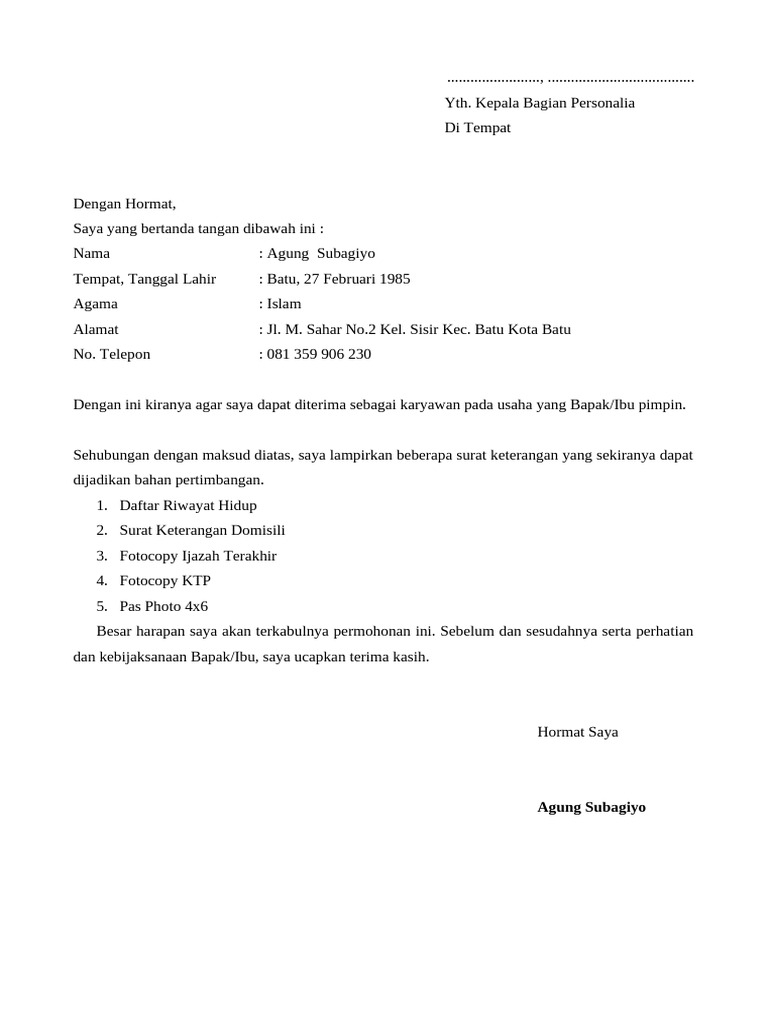 Dengan ini kiranya agar saya dapat diterima sebagai karyawan pada usaha yang Bapak/Ibu pimpin.