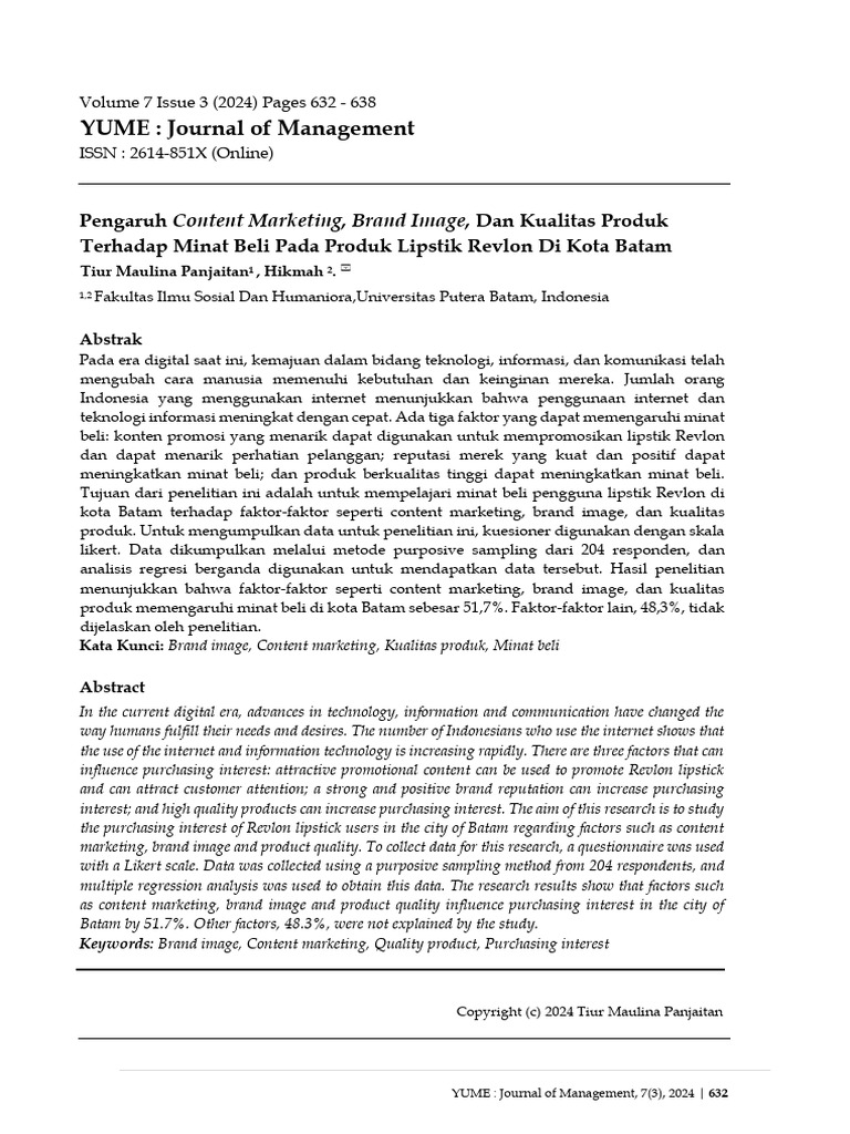 Kata Kunci: Brand image, Content marketing, Kualitas produk, Minat beli
