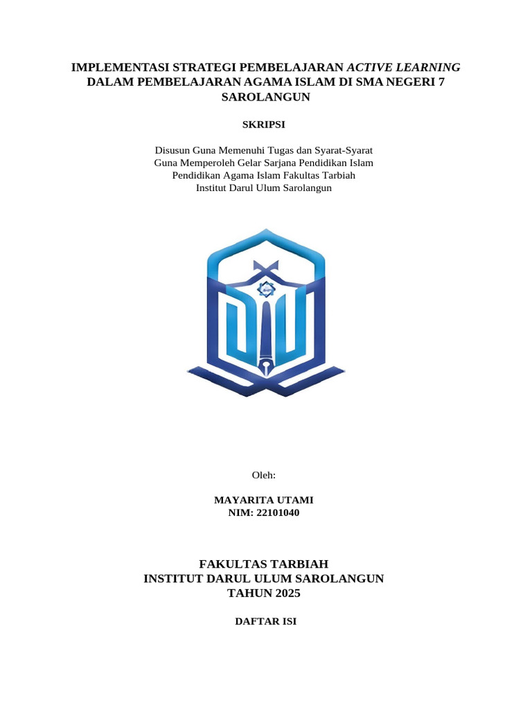 Active Learning pada mata pelajaran PAI di Sekolah Menengah Atas Negeri