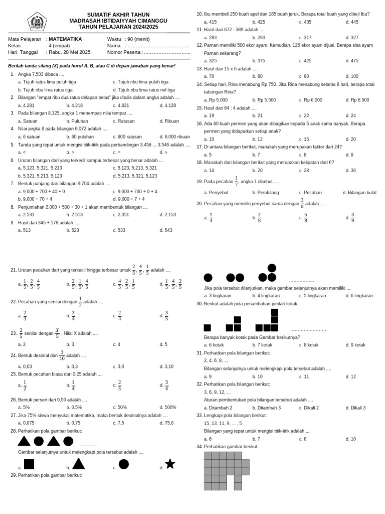 MADRASAH IBTIDAIYYAH CIMANGGU a. 415 b. 425 c. 435 d. 445