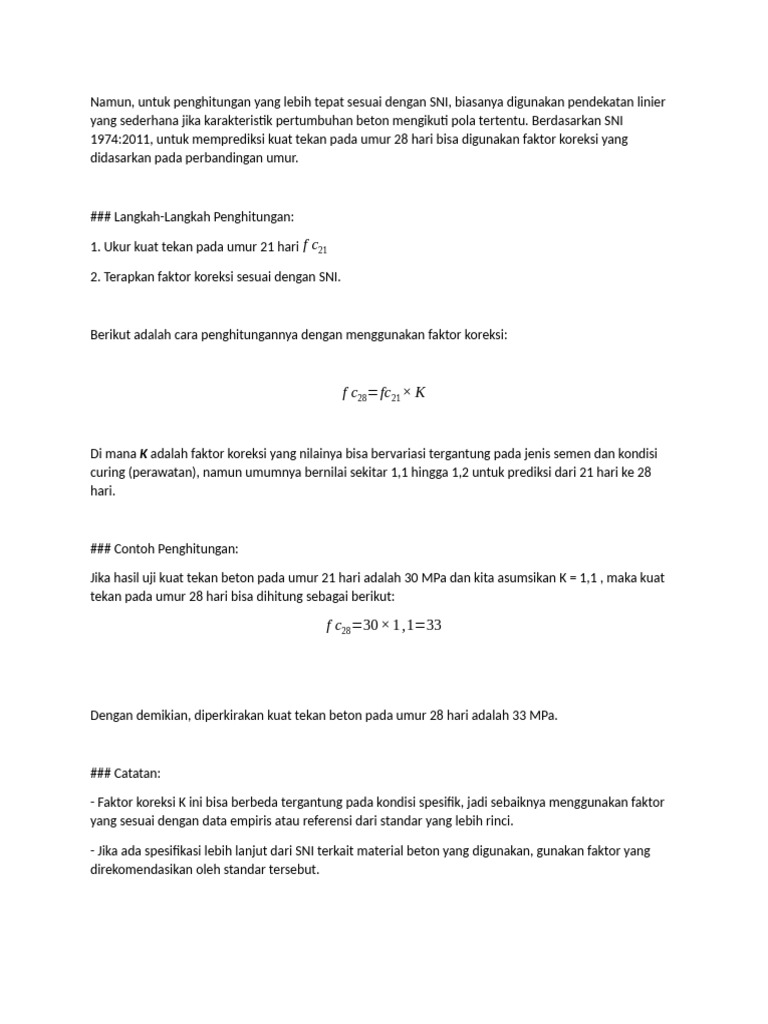 - Jika ada spesifikasi lebih lanjut dari SNI terkait material beton yang digunakan, gunakan faktor yang
