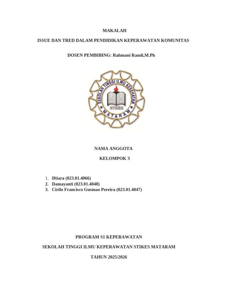 ISSUE DAN TRED DALAM PENDIDIKAN KEPERAWATAN KOMUNITAS