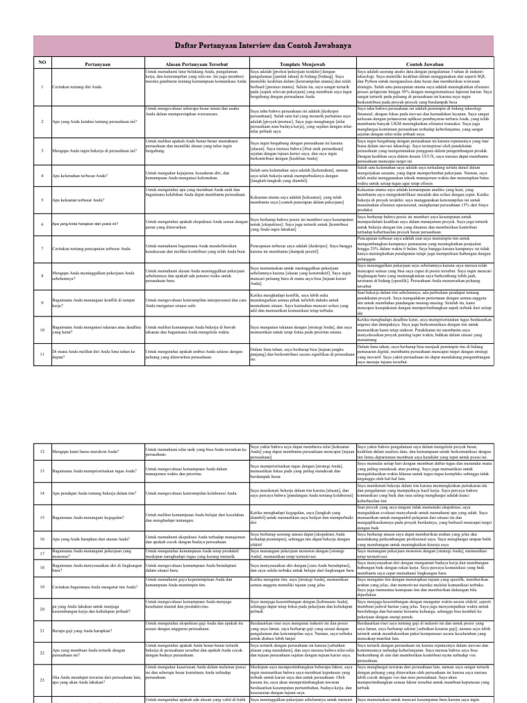 NO Pertanyaan Alasan Pertanyaan Tersebut Template Menjawab Contoh Jawaban
