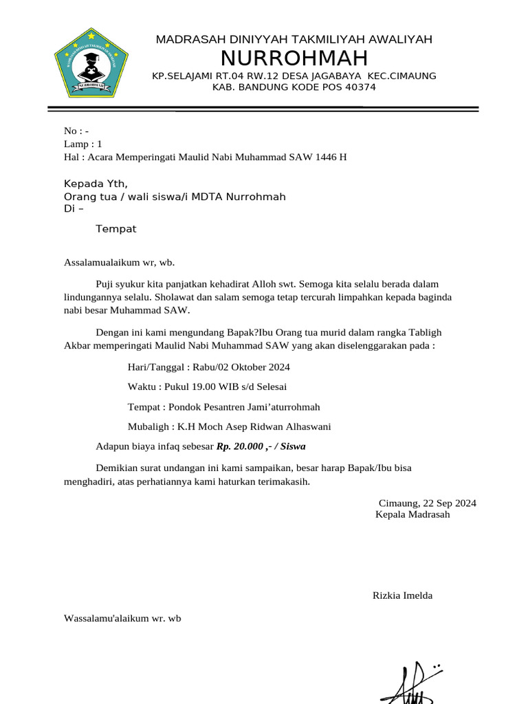 Dengan ini kami mengundang Bapak?Ibu Orang tua murid dalam rangka Tabligh